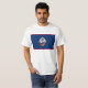 Die Front dieses Shirts hat eine große und mutige Guam-Flagge, die durch zur Rückseite des Shirts stößt, das sie scheinen lässt, dass die Flagge das Shirt durchläuft.