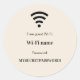 A Wi-Fi symbol. Add your wi-fi name and password for your customers/guests. Beige background, black text.