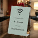 A Wi-Fi symbol. Add your wi-fi name and password for your customers/guests. Sage green background.