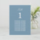 Gästennamen Dusty Blue Table Card, leicht in der Online-Personalisierungsvorlage personalisieren, um die Tischnummer für die entsprechende Tabelle und die Namen der Gäste für diese Tabelle anzuzeigen. Das Design kopiert sich automatisch auf die andere Seite der Karte, um den Gästen zu helfen, ihren Tisch von beiden Seiten des Tisches zu finden. Diese schlicht minimalistische, stilvolle Tischkarte bietet Platz um die Textelemente und ermöglicht so die Wahl der Anzeigemethoden wie das Aufhängen oder Framing der Karte.