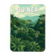Guinea Retro Vektor Reise Design. Die Guinea bietet ein unverwechselbares und authentisches Erlebnis der natürlichen Schönheit und lebendigen Traditionen Westafrikas, von der lebhaften Hauptstadt Conakry bis zum üppigen Hochland von Fouta Djallon.