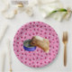 Auf einem rosa Blütenhintergrund sind braune und weiße Schweine der Guinea.