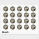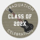 Runder Abschluss Umschlag Aufkleber mit schwarzem E-Gitarrenbild und eigenem Weißtext. In der Mitte eine Klasse mit Jahr einschließen und zwei kurvige Textbereiche mit "Abschluss feiern" oder einer anderen Formulierung anpassen. Musikdirigent, Musiker, Gitarrenspieler Thema für den Typ grad in braun und schwarz Farben. Das Design funktioniert nur mit runden oder quadratischen Aufklebern.