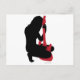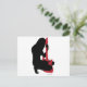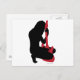 Silhouette eines Mädchens mit Gitarre. Mädchen ist schwarz und Gitarre ist rot.