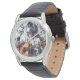 Uhr, Klassische Damenuhr mit schwarzen Lederarmband
