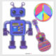 Guitar Player Blue Robot and Peace Sign Aufkleber