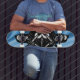 Jedes Kind will eines dieser tollen Skate-Boards. Dieses hochwertige Skate-Board hat eine coole, gruselige Gitarre und spielt Skelettdesign mit einem wirbelblauen Hintergrund. Perfektes Urlaubsgeschenk für Jungen in den Extremsport des Skate Boarding.