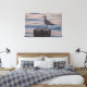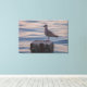 Ein jugendlicher Western steht auf einem verwitterten Betonpfosten. Der Vogel hat graue und braune Federn und einen dunklen Schnabel. Der Beitrag zeigt Alterszeichen mit Rostflecken und einer rauen Textur. Im Hintergrund ist ein Gewässer mit sanften Wellen, das sanfte Rosa und Blau vom Himmel reflektiert. Die Stimmung ist insgesamt ruhig und ruhig.