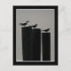 Silhouette von drei Möwen, die auf Pilzen sitzen.