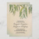 Einfache, aber niedliche Einladungen mit Gummi-Blätter. Der ideale Ort für Verlobungen im Freien mit Eukalyptusbäumen und Vintager rustikaler Dekoration.