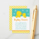 Diese niedliche und unterhaltsame Duschkabine bietet eine zauberhafte gelbe Ente und ein Entenlein in weißen Seifenbadebläschen auf hellgrünem Hintergrund mit orangefarbenem Band und gelben Streifen. Der Text kombiniert handgeschriebene Skripte mit serifenlosen Schriftart für ein stilvolles und modernes Design. Das ist perfekt für eine Babydusche.