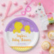 Diese niedliche und lustige Platte ist mit einer zauberhaften gelben Ente und Entenling in weißen Seifenbädern auf einem hellen lila Hintergrund mit einem orangen Band und gelben Streifen ausgestattet. Der Text kombiniert handgeschriebene Skripte mit serifenlosen Schriftart für ein stilvolles und modernes Design. Das ist perfekt für eine Babydusche.