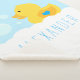 Quack, Quack! Das von der Designfirma Enchantfancy entworfene Rubber Ducky With Blue Heart Sherpa Blanket verfügt über eine niedliche gelbe Ente mit einem blauen Herz auf seinem Flügel. Die gelbe Gummifotze schwebt auf Badblasen. Personalisieren Sie mit Ihrem Namen! Diese Decke macht ein bezauberndes Geschenk.