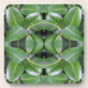 Auf diesem Untersetzer grün mit dem Original Gummibaummuster von HomeWare. Dieses tropisch üppige Design entstand aus einem originalen Nahaufnahme der Blätter eines Gummibaumes. Die Blätter sind glatt und glänzend, in natürlichen Grüntönen, von einem helleren, gelben Grün im Sonnenlicht bis zu einem tieferen Grün im Schatten. Die Blätter sehen plump aus und ihre hellgelb grünen Stiele fügen dem Foto-Design ein lineares Muster hinzu.