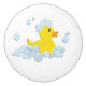 Niedliche wenig gelbe ducky Gummischwimmen in den blauen Blasen