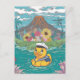 Die künstlerische Intelligenz der niedlichen Gummiente auf See vor einem tropischen Vulkan
