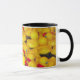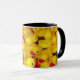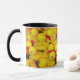 Kaffee Tasse mit gelbem Gummifotzenmuster.