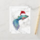 Dive into the holiday spirit with this stunning colorful guppy fish sporting a cheerful Santa Hat! This vibrant watercolor illustration showcases the guppy's beautiful blue and orange fins, intricate scales, and lively eyes against a soft white marble background. It's an ideal choice for aquarists, fish enthusiasts, or anyone who loves unique and artistic Christmas or Holiday greetings. Send a splash of joy and warmth this winter season with this charming underwater festive friend.