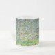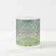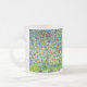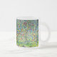 Mattierte Glass Coffee Tasse mit Gustav Klimts Gemälde Apple Tree, I (1912). Ein bunter Apfelbaum steht in einem grünen Feld mit lila, rosa, gelben und weißen Blume. Ein perfektes Geschenk für Fans des Jugendstils und österreichischer Kunst.