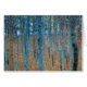 Das Werk basiert auf klassischen Naturmalereien von Gustav Klimt, Beech Grove 1, 1902. Das Kunstwerk zeigt einen dichten Wald von hohen, schlanken Birkenbäumen mit blassfarbenen Stämmen, die von dunklen, senkrechten Linien gekennzeichnet sind. Das Blätterdach ist in Blau-, Grün- und Gelbtönen dargestellt und verleiht der Szene ein Gefühl von Tiefe und Lebendigkeit. Der Waldboden ist mit orangefarbenen und braunen Blätter bedeckt und bildet einen auffallenden Kontrast zu den leichteren Baumstämmen. Die Gesamtkomposition verwendet pointillistische und impressionistische Techniken, die dem Bild ein lebendiges, texturiertes Aussehen verleihen. Die Vertikalität der Bäume betont die ruhige und rhythmische Struktur des Waldes.