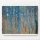 Das Werk basiert auf klassischen Naturmalereien von Gustav Klimt, Beech Grove 1, 1902. Das Kunstwerk zeigt einen dichten Wald von hohen, schlanken Birkenbäumen mit blassfarbenen Stämmen, die von dunklen, senkrechten Linien gekennzeichnet sind. Das Blätterdach ist in Blau-, Grün- und Gelbtönen dargestellt und verleiht der Szene ein Gefühl von Tiefe und Lebendigkeit. Der Waldboden ist mit orangefarbenen und braunen Blätter bedeckt und bildet einen auffallenden Kontrast zu den leichteren Baumstämmen. Die Gesamtkomposition verwendet pointillistische und impressionistische Techniken, die dem Bild ein lebendiges, texturiertes Aussehen verleihen. Die Vertikalität der Bäume betont die ruhige und rhythmische Struktur des Waldes.