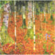 Aufkleber mit Gustav Klimts Gemäldehaus mit Birkenbäumen (1903). Eine Herbstlandschaft mit orangefarbenen Blätter in einem Birkenwald mit blauen Blumen. Ein wunderbares Geschenk für Jugendliche und österreichische Kunstliebhaber.