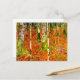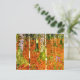 Postkarte mit Gustav Klimts Gemälde Bauernhaus mit Birkenbäumen (1903). Eine Herbstlandschaft mit orangefarbenen Blätter in einem Birkenwald mit blauen Blumen. Ein wunderbares Geschenk für Jugendliche und österreichische Kunstliebhaber.