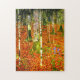 Puzzle mit Gustav Klimts Gemälde Bauernhaus mit Birkenbäumen (1903). Eine Herbstlandschaft mit orangefarbenen Blätter in einem Birkenwald mit blauen Blumen. Ein wunderbares Geschenk für Jugendliche und österreichische Kunstliebhaber.