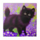 Keramik Tile mit einem schwarzen Kätzchen von Gustav Klimt! Diese große mit Augen Schönheit Posen in einem grünen Feld von violetten Blumen. Ein nachdenkliches Geschenk für Katzenliebhaber und österreichische Kunstliebhaber!