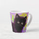 Latte Tasse mit einem schwarzen Kätzchen von Gustav Klimt! Diese große mit Augen Schönheit Posen in einem grünen Feld von violetten Blumen. Ein nachdenkliches Geschenk für Katzenliebhaber und österreichische Kunstliebhaber!