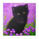 Keramik Tile mit einem Gustav Klimt Katze! Dieses flauschige Kätzchen sitzt in einem grünen Feld mit violetten Blumen. Ein puristisches Geschenk für Katzenliebhaber und österreichische Kunstliebhaber!