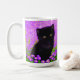 Kaffee Tasse mit einem Gustav Klimt! Dieses flauschige Kätzchen sitzt in einem grünen Feld mit violetten Blumen. Ein puristisches Geschenk für Katzenliebhaber und österreichische Kunstliebhaber!