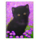 Notebook mit Gustav Klimt Katze! Dieses flauschige Kätzchen sitzt in einem grünen Feld mit violetten Blumen. Ein puristisches Geschenk für Katzenliebhaber und österreichische Kunstliebhaber!