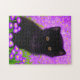Puzzle mit einem Gustav Klimt Katze! Dieses flauschige Kätzchen sitzt in einem grünen Feld mit violetten Blumen. Ein puristisches Geschenk für Katzenliebhaber und österreichische Kunstliebhaber!
