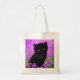 Tote Tasche mit einem Gustav Klimt Katze! Dieses flauschige Kätzchen sitzt in einem grünen Feld mit violetten Blumen. Ein puristisches Geschenk für Katzenliebhaber und österreichische Kunstliebhaber!