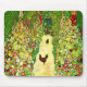 Mouse Pad mit dem Ölmalereigarten von Gustav Klimt (1917). Zwei braune Hühner stehen auf einem Gartenweg. Auf dem Weg blühen schöne rosa, rote und weiße Blume. Ein großartiges Geschenk für Jugendliche und österreichische Kunstliebhaber.