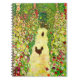 Notebook mit dem Ölmalereigarten von Gustav Klimt mit Roostern (1917). Zwei braune Hühner stehen auf einem Gartenweg. Auf dem Weg blühen schöne rosa, rote und weiße Blume. Ein großartiges Geschenk für Jugendliche und österreichische Kunstliebhaber.