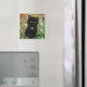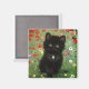 Magnet mit einem Gustav Klimt Kitten! Dieses schwarze Kätzchen trägt einen silbernen Kragen und sitzt in einem Feld aus roten, blauen, weißen und gelben Blumen. Ein wunderbares Geschenk für Katzenliebhaber und österreichische Kunstliebhaber!