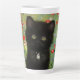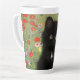 Latte Tasse mit einem Gustav Klimt Kitten! Dieses schwarze Kätzchen trägt einen silbernen Kragen und sitzt in einem Feld aus roten, blauen, weißen und gelben Blumen. Ein wunderbares Geschenk für Katzenliebhaber und österreichische Kunstliebhaber!
