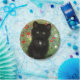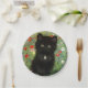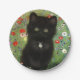 Papier Teller mit einem Gustav Klimt Kitten! Dieses schwarze Kätzchen trägt einen silbernen Kragen und sitzt in einem Feld aus roten, blauen, weißen und gelben Blumen. Ein wunderbares Geschenk für Katzenliebhaber und österreichische Kunstliebhaber!