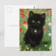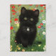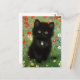 Postkarte mit einem Gustav Klimt Kitten! Dieses schwarze Kätzchen trägt einen silbernen Kragen und sitzt in einem Feld aus roten, blauen, weißen und gelben Blumen. Ein wunderbares Geschenk für Katzenliebhaber und österreichische Kunstliebhaber!