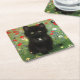 Papier Untersetzer mit einem Gustav Klimt Kitten! Dieses schwarze Kätzchen trägt einen silbernen Kragen und sitzt in einem Feld aus roten, blauen, weißen und gelben Blumen. Ein wunderbares Geschenk für Katzenliebhaber und österreichische Kunstliebhaber!