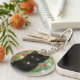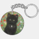 Schlüsselanhänger mit einem Gustav Klimt Kitten! Dieses schwarze Kätzchen trägt einen silbernen Kragen und sitzt in einem Feld aus roten, blauen, weißen und gelben Blumen. Ein wunderbares Geschenk für Katzenliebhaber und österreichische Kunstliebhaber!
