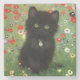 Stone Untersetzer mit einem Gustav Klimt Kitten! Dieses schwarze Kätzchen trägt einen silbernen Kragen und sitzt in einem Feld aus roten, blauen, weißen und gelben Blumen. Ein wunderbares Geschenk für Katzenliebhaber und österreichische Kunstliebhaber!