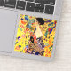 Aufkleber mit Gustav Klimts Ölgemälde Lady mit Fan (1918). Eine Frau, die einen blauen Kimono trägt, hält einen roten Fan vor einem bunten, gelben Hintergrund von Blume und Pfauen. Ein großartiges Geschenk für die Fans von Japonisme und europäischer Kunst.