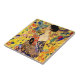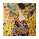 Fil mit Gustav Klimts Ölgemälde Lady mit Fan (1918). Eine Frau, die einen blauen Kimono trägt, hält einen roten Fan vor einem bunten, gelben Hintergrund von Blume und Pfauen. Ein großartiges Geschenk für die Fans von Japonisme und europäischer Kunst.