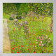 Poster mit dem Ölgemälde von Gustav Klimt mit Rose (1911). Auch Obstgarten mit Rosen genannt, ist ein lebendiger und grüner Obstgarten schön dargestellt. Rosa Rosen und andere lila und rote Blume reihen sich in den Obstgarten ein. Ein wunderbares Geschenk für Jugendliche und österreichische Kunstfans!