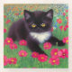 Untersetzer aus Glas mit einem Gustav Klimt tuxedo! Dieses hübsche Schwarz-Weiß-Kätzchen liegt in einem Bereich mit roten, blauen, weißen und orangefarbenen Blume. Ein phantastisches Geschenk für Katzenliebhaber und österreichische Kunstliebhaber!