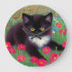Uhr mit Gustav Klimt tuxedo Katze! Dieses hübsche Schwarz-Weiß-Kätzchen liegt in einem Bereich mit roten, blauen, weißen und orangefarbenen Blume. Ein phantastisches Geschenk für Katzenliebhaber und österreichische Kunstliebhaber!