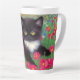 Latte Tasse mit einem Gustav Klimt tuxedo! Dieses hübsche Schwarz-Weiß-Kätzchen liegt in einem Bereich mit roten, blauen, weißen und orangefarbenen Blume. Ein phantastisches Geschenk für Katzenliebhaber und österreichische Kunstliebhaber!